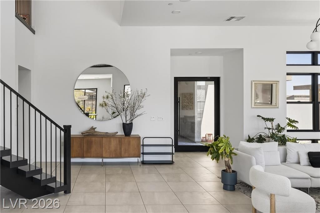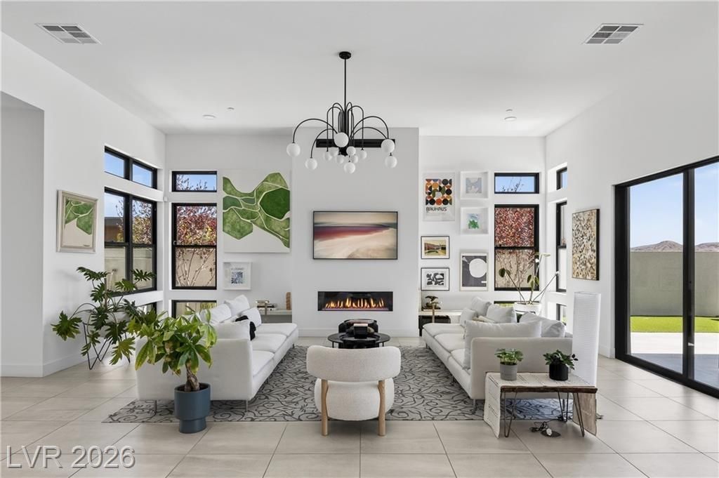 Ever dreamed of living inside a painting? This two-story Summerlin showpiece sits on one of the largest lots with no rear neighbors and unobstructed Red Rock Canyon and mountain views from sunrise to sunset. Inside, 6 bedrooms, 6 bathrooms and an office are wrapped in natural light from oversized windows. One bedroom is a private casita with its own bathroom, perfect for guests who like their space. Another downstairs bedroom functions as a true next-gen retreat with its own kitchen and separate entrance ? ideal for long stays or multigenerational living. The kitchen flows effortlessly into the main living and dining areas, but the real magic is outside: multiple cooking stations, resort-style pool and spa, and lawn space ready for late-night hangs and impromptu games. Thoughtful finishes, custom walk-in closets, and a location moments from trails, parks, dining, and entertainment make this a rare find at Sandalwood in Summerlin.