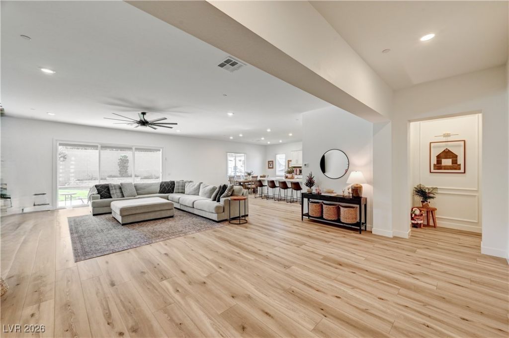 Welcome to this spectacular single-story luxury home where no detail has been overlooked and no expense spared. This immaculate residence showcases thoughtful design and premium upgrades throughout. Step inside to an open, light-filled floor plan with soaring ceilings and designer finishes. The gourmet chef's kitchen features custom cabinetry, high-end stainless-steel appliances, custom countertops, and an expansive island ideal for entertaining. Luxury vinyl plank flooring flows throughout, complemented by upgraded cabinetry and modern finishes. An office positioned off the entry provides a perfect work-from-home space. This home includes a private suite with its own entrance, living room, kitchenette, bedroom, and full bathroom?perfect for extended family, guests. The beautifully landscaped backyard is an entertainer's dream, featuring a sparkling pool and spa, covered patio, elegant pavers, and year-round entertaining space. RV parking, solar paid off. This Next Gen® home by Lennar.