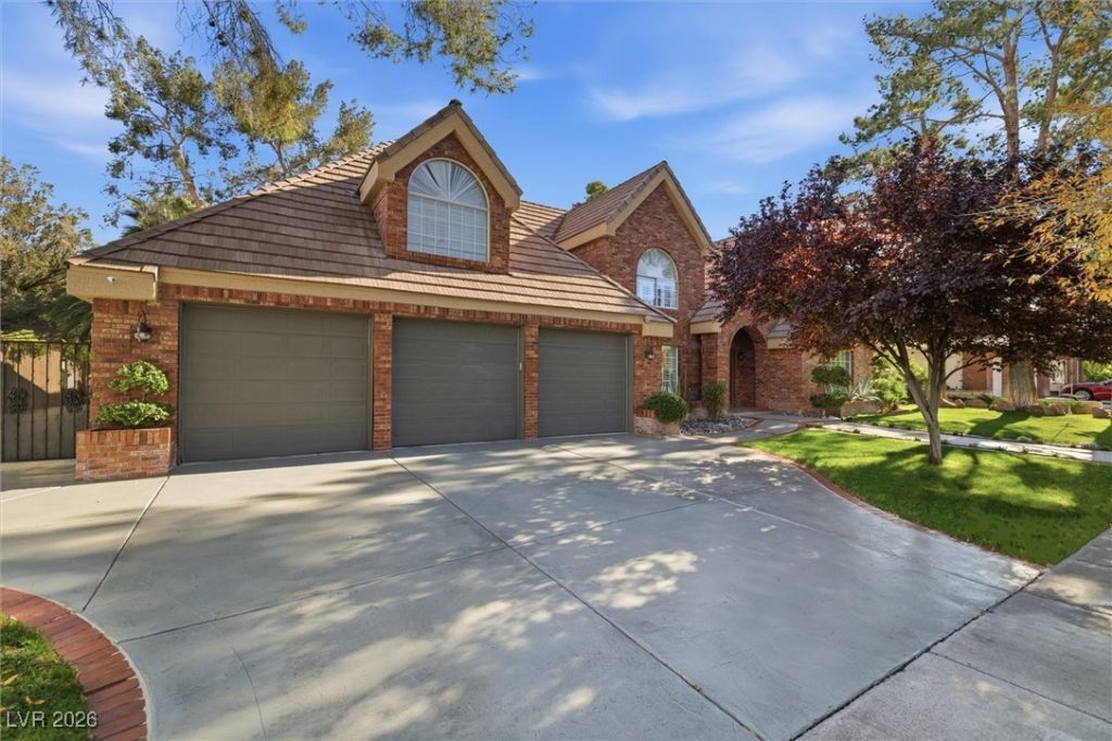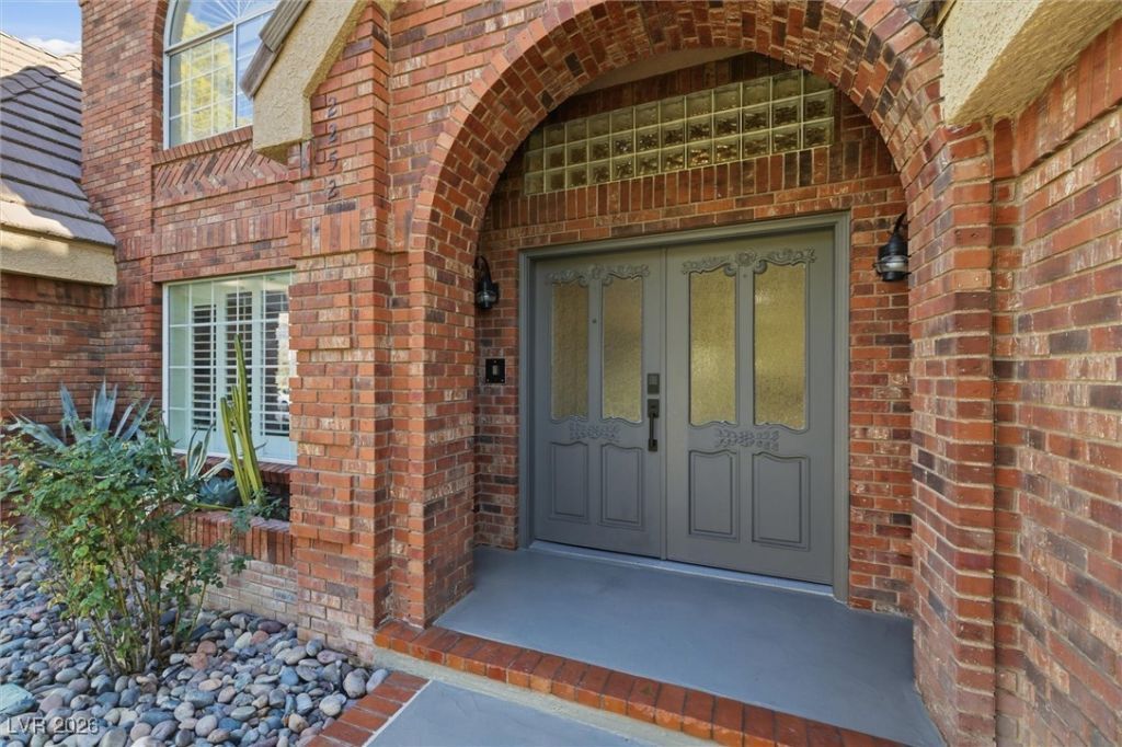 Welcome to a truly unique 3,758 sq ft brick estate in the prestigious guard-gated community of The Fountains. Set on a lush almost 14,000 sq ft lot, this home offers a rare blend of timeless brick front and beautifully landscaped resort style backyard W/sparkling swimming pool & built-in BBQ. Inside, the main-level primary suite provides a sitting area, his&hers closets, direct backyard access. Upstairs, all bedrooms have custom walk-in closets, two-way staircase offers convenient access from Kitchen & entryway. Entertain in the elegant formal dining room or relax in the vaulted-ceiling family room. The chef's kitchen is equipped with custom cabinetry, Wolf cooktop island, Sub-Zero refrigerator & double Wolf ovens. The Fountains community is known for its exclusivity, top-tier security, and prime location just minutes from shopping, airport & Las Vegas Strip. Enjoy the expansive backyard W/swimming pool and multiple seating areas, making it perfect for both relaxation and entertaining.