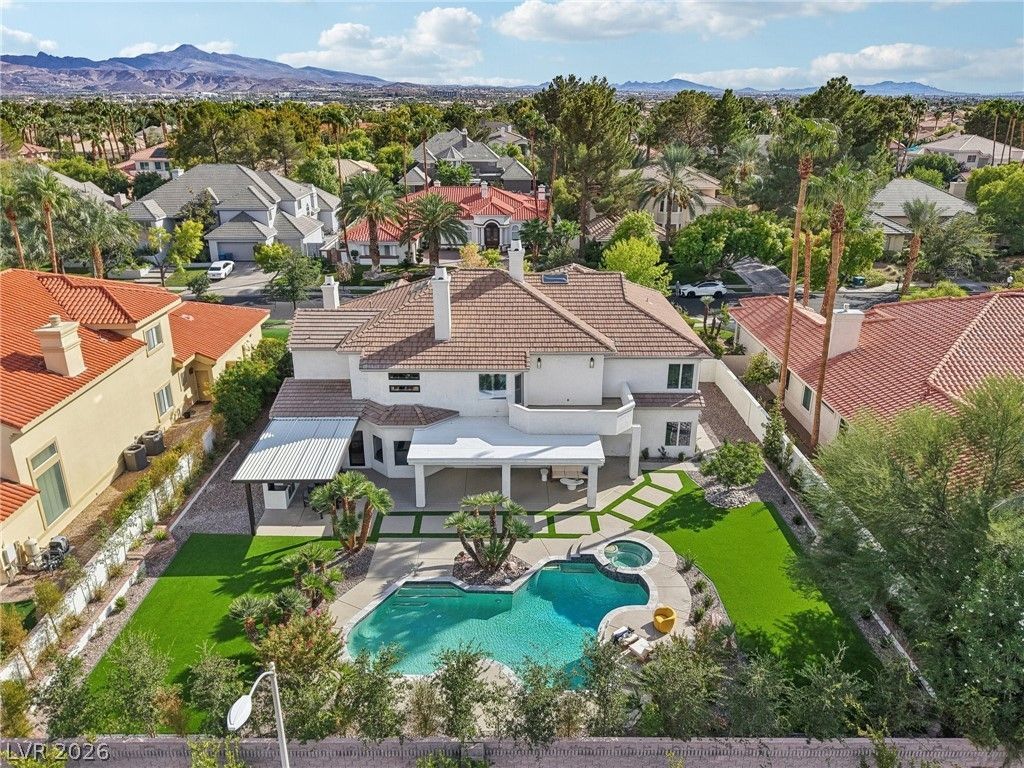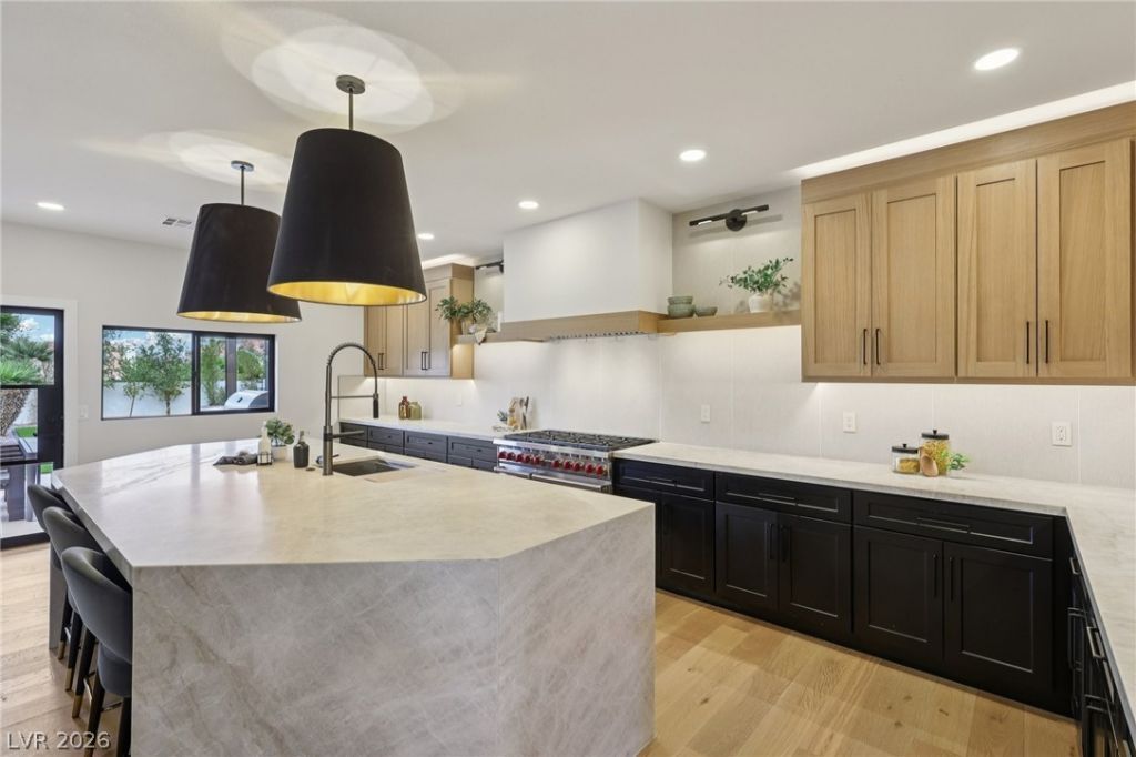 Step into his fully remodeled 5,270 sqft custom home nestled in one of the most prestigious guard-gated communities in all of Green Valley, The Fountains. Tree-lined streets, winding paths, & private amenities like tennis courts & a community park create a serene, resort-style feel. Every inch of this 5 Bedroom 5 bathroom home has been meticulously reimagined with exceptional craftsmanship & high-end finishes. Stepping inside the custom built pivot door, you'll notice a meticulous attention to detail. flooring imported from Italy, white oak cabinetry and Taj-Mahal Quartzite countertops throughout the home. With over 1/3rd of an acre, enjoy your complete reimagined backyard oasis, Pool, Spa & built in BBQ area. Premium appliances, light fixtures and hardware have been carefully chosen for their timeless design offering a level of quality you can see & feel. This is more than a renovation; This home offers rare privacy and timeless luxury?an oasis just minutes from Las Vegas excitement.