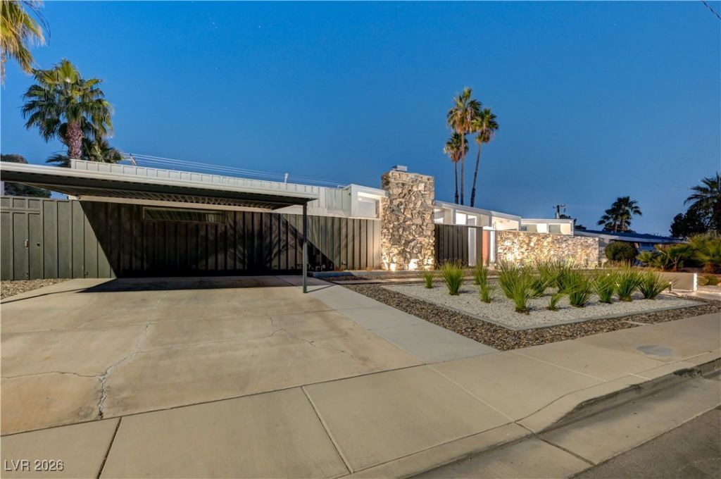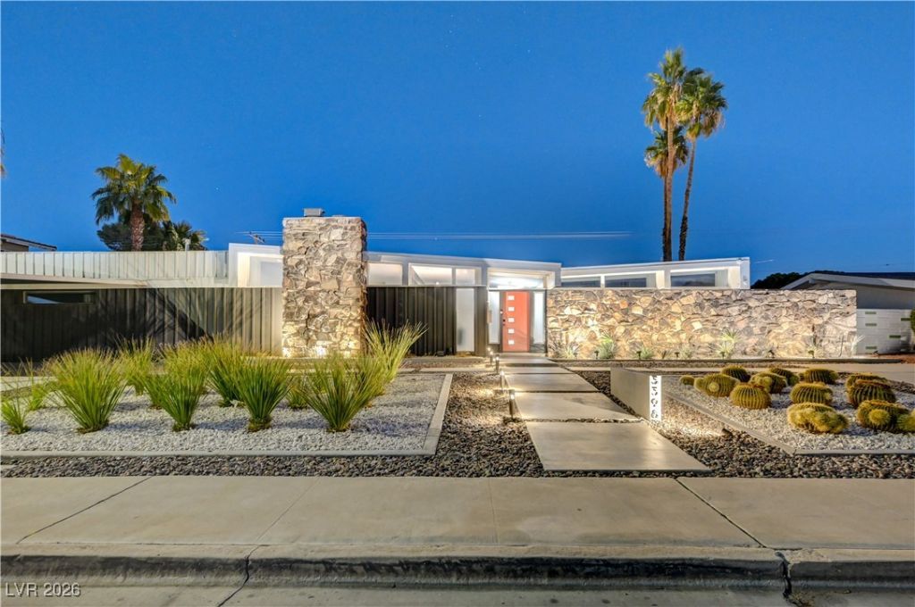 This Stunning Single-Story Home has been completely renovated & sits on the 9th Fairway of the LV National Golf Course in Historical Paradise Palms. Designed by Architects, Palmer & Krisel, this is the 6A model that features the recognizable roof & clerestory windows. This home was once occupied by actress, Betty Grable & was also featured in Atomic Ranch Digital Magazine. This property blends Mid-Century Charm with Modern Comfort. 2019 Renovations include Stylish finishes throughout designed with sophistication that is perfect for entertaining. Enjoy open-concept living w/spacious living spaces, gourmet kitchen, & generously sized bedrooms. Equipped with a secondary kitchen, office/den area, & indulge in outdoor pool, spa, sauna, & fire pit. Close to airport, strip, & shopping. Future Brightline West High-Speed Train Station connecting LV to CA is mins away from the property. Enjoy amazing strip views in one the city's most iconic neighborhoods! No HOA. Actual Square Footage: 3,124.