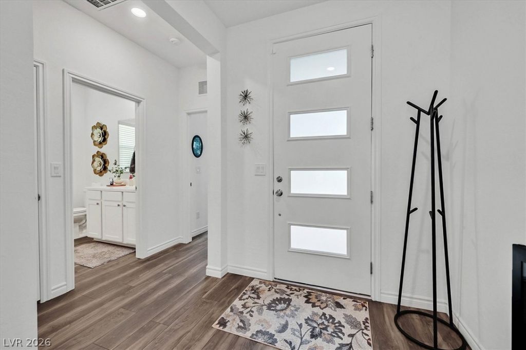 Experience modern living in this stunning single-story home. Designed with both comfort and flexibility in mind, a Next-Gen suite with a private entrance that is perfect for long-term guests, or multi-generational living. The interior boasts an open-concept floor plan featuring durable LVP flooring that flows seamlessly throughout. The chef-inspired kitchen featuring a breakfast bar island, ample cabinetry, and a full suite of included appliances. The primary bedroom is a sanctuary designed for relaxation, offering a walk-in closet and a spa-like bathroom with a separate soaking tub and walk-in shower. The rare 3-car garage, providing plenty of room for vehicles & additional storage. Step outside to a private, low-maintenance backyard featuring a large covered patio, offering the perfect shaded space for outdoor dining and entertaining without the weekend chores. Just minutes from the Aliante Casino you will have world-class dining, shopping, and entertainment right at your doorstep.