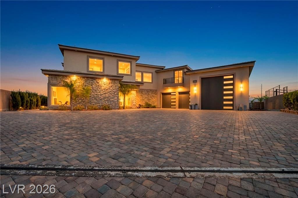 DOUBLE GATED MODERN DESIGN*CUSTOM-BUILT LUXURY HOME ON OVER 1/3 ACRE*W/COOLED RV GARAGE & 2 CAR GARAGE*5BED*6BATH ALMOST 5000 SQFT*20-FOOT CEILINGS*THOUGHTFULLY DESIGNED FLOOR PLAN FLOWS EFFORTLESSLY BETWEEN THE FORMAL LIVING AND DINING SPACES*2 BEDROOMS DOWNSTAIRS W/PRIVATE BATHS*IDEAL FOR HOSTING GATHERINGS OR ENJOYING EVERYDAY MOMENTS*EXPANSIVE WINDOWS FILL THE INTERIOR WITH NATURAL LIGHT, HIGHLIGHTING THE ARCHITECTURAL DETAILS AND CREATING A BRIGHT, AIRY AMBIANCE*AT THE CENTER OF THE HOME IS A CHEF-INSPIRED KITCHEN, CAREFULLY APPOINTED FOR BOTH FUNCTION AND STYLE*THIS SPACE OFFERS THE PERFECT BALANCE OF BEAUTY AND PRACTICALITY*THE FAMILY ROOM PROVIDES A COMFORTABLE SPACE TO UNWIND, COMPLETE WITH A SLEEK, EXTENDED WINE REFRIGERATOR*PERFECT FOR ELEVATED ENTERTAINING*LOFT W/ FIREPLACE*PRIVATE PRIMARY SUITE HAS BALCONY W/ STRIP & CITY VIEWS*SECONDARY ROOM W/BALCONY TO ENJOY MOUNTAIN & CITY VIEWS*BACKYARD MADE FOR ENTERTAINING WITH POOL W/FIRE FEATURES*BUILT IN BBQ & SPACE TO UNWIND*