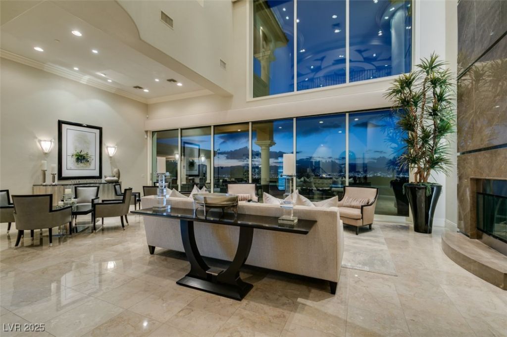 Step into a world of luxury w/ this mesmerizing masterpiece in prestigious Anthem CC.This fully furnished home offers full Strip & mtn views!With 6 beds/8 baths on just under a ½ acre,this home boasts top-of-the-line finishes & expansive pocket doors creating seamless indoor-outdoor living.A stunning floor-to-ceiling granite fireplace w/ambient backlighting captures attention in the formal living room.The island kitchen is equipped w/Wolf appliances,butler's pantry & temp-controlled wine room.Entertain guests from the indoor/outdoor wet bar w/pocket slider windows & ice maker for patio cocktails.The pavered loggia features an outdoor kitchen & entertainment area to enjoy the Vegas skyline.Imagine movies in the private theater or take the elevator & explore the ensuite bedrooms (incl. 2 masters).'Honey,stop the car has new meaning the moment you see the stunning porte-cochere & circular drive w/an oversized 4-car garage.This exquisite custom home offers unparalleled luxury & style.