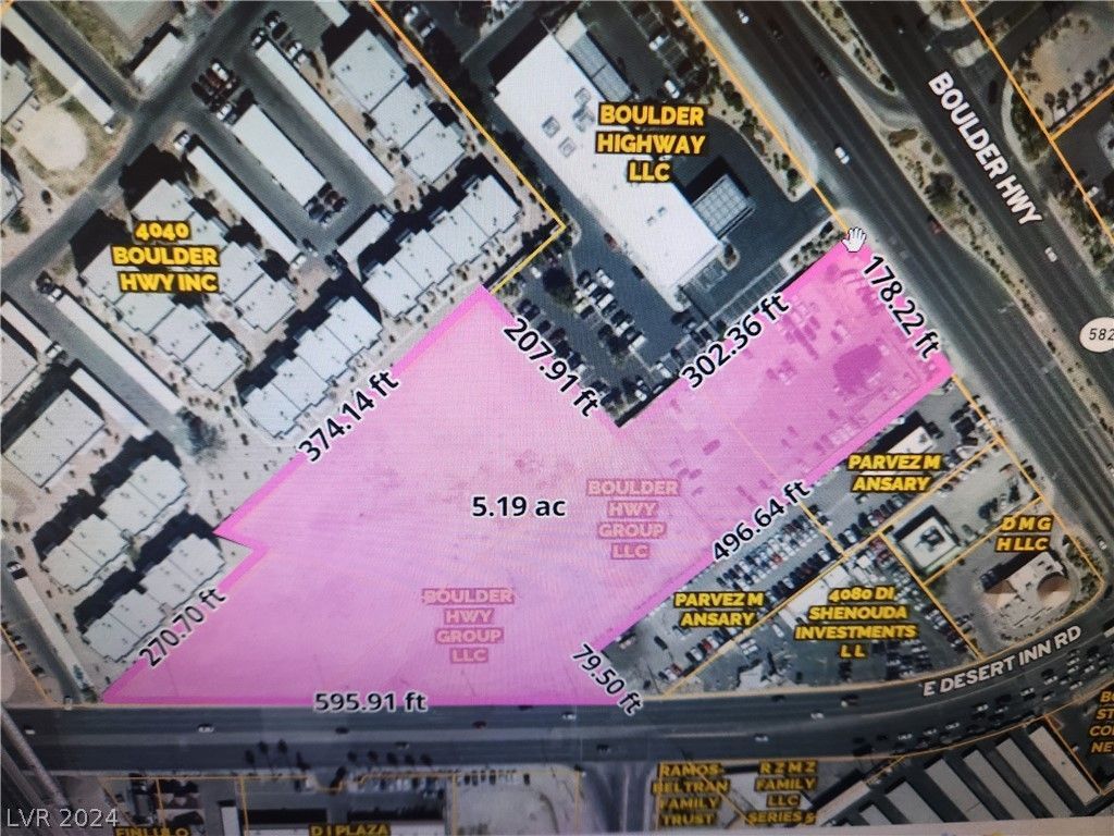 Five contiguous parcels for sale (5.46 acres) with Boulder Hwy frontage and Desert Inn frontage. Multiple zoning uses. Lot numbers include 161-07-801-009,010,012,14 & 015. No HOA. Overhead power is available. Water and sewer are in the street. Owner may carry short term with a short feasibility period.