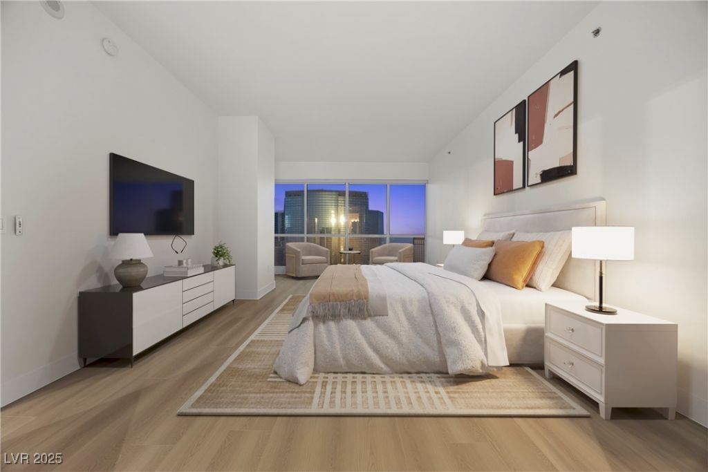 Experience the epitome of luxury, security, and exclusivity at Panorama Towers, one of Las Vegas' most prestigious high-rise residences. This stunning 30th-floor, two-bedroom, two-and-a-half-bath home offers sweeping Strip views and a sophisticated urban retreat just moments from the Las Vegas Strip and the vibrant CityCenter district. Recently refreshed, this residence features new flooring, updated cabinets, polished marble countertops, and fresh paint throughout, creating a bright and modern ambiance. Expansive floor-to-ceiling windows fill the home with natural light and frame the dynamic cityscape beyond. The open-concept layout flows effortlessly from the gourmet kitchen?equipped with high-end stainless steel appliances and sleek granite surfaces?into the spacious living area, ideal for entertaining or relaxing in refined comfort. Additional highlights include two premium first-floor parking spaces in a prime location and an included storage unit for added convenience.