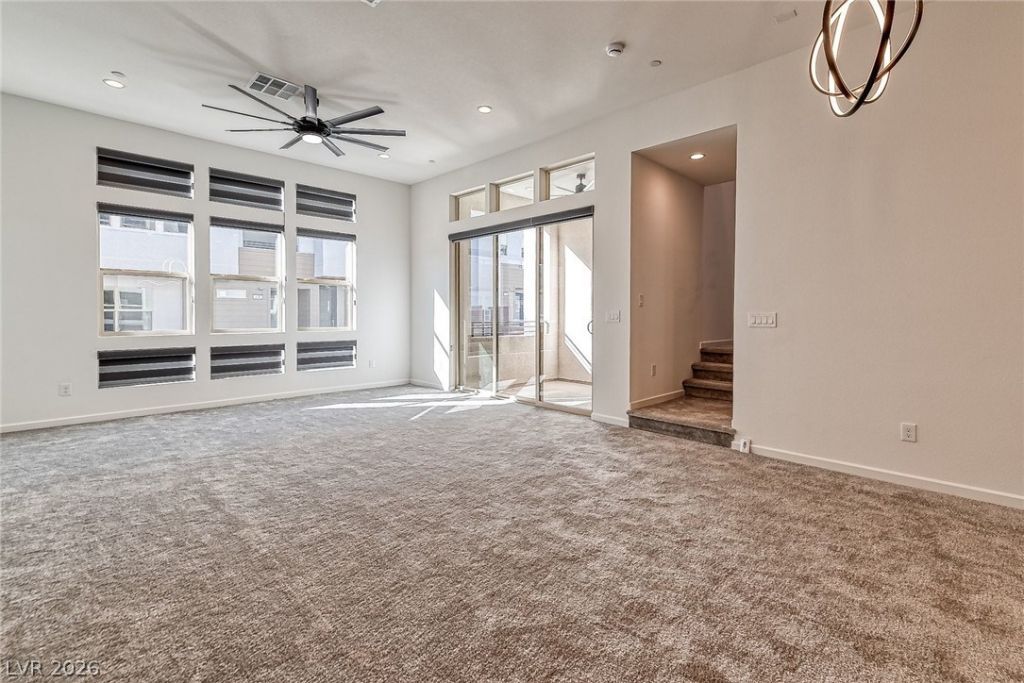 Experience elevated living in this Luciana Vista townhome by Toll Brothers, perfectly placed in the vibrant Cordillera community at Summerlin's Red Point Village. Step into an open-concept main level filled with natural light, high ceilings & a sleek kitchen featuring an oversized island, stainless steel appliances & a walk-in pantry. A slider opens to the balcony, creating a lively indoor-outdoor flow ideal for relaxing or entertaining. Upstairs, the primary suite offers a walk-in closet & en-suite bath, joined by two bright secondary bedrooms & a convenient laundry closet. The private 1st floor bedroom with en-suite bath is perfect for guests, multi-gen living or a dedicated office. Premium upgrades include epoxy garage floors, EV charger, tankless H2O heater, water conditioner, custom lighting, window coverings & stylish designer finishes. Enjoy Cordillera's community pool & a prime Summerlin location near parks, trails, top-rated schools, Downtown Summerlin & Red Rock Canyon.
