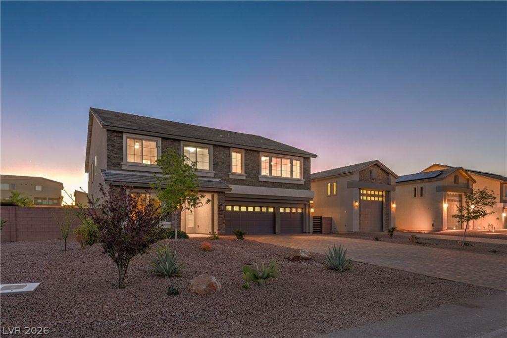 Your DREAM estate on a RARE ½-acre in a prime location?just 15 minutes from Allegiant Stadium and 12 minutes from Harry Reid International Airport. Step inside to a bright open-concept floor plan designed for modern living and entertaining. The gourmet chef's kitchen features upgraded appliances, a massive center island, and elegant finishes?perfect for hosting or everyday comfort. A bedroom and full bathroom on the main level offer flexibility for guests or multigenerational living. Upstairs, retreat to the luxurious primary suite with a spa-inspired bathroom featuring a standalone soaking tub and oversized shower?the perfect place to relax and unwind. Car enthusiasts will love the 7-car garage setup, including an attached 3-car garage and detached 4-car RV garage with double pass-through doors, ideal for RV parking, boats, toys, or a workshop. All of this sits on a generous ½-acre lot, offering rare space, luxury, and versatility in a highly desirable location.