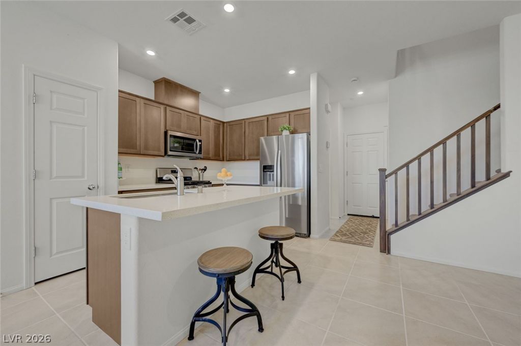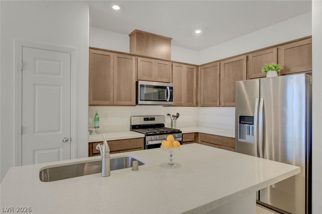 Level up your Lifestyle! Strategically situated near anything & everything you could want....Cowabunga Bay water park, Henderson top rated parks, dog park, numerous restaurants, coffee shop, athletic club, healthcare, retail shops, schools. Easy freeway access. This two story townhome features open concept downstairs living/dining/kitchen. True luxury primary suite complete with balcony, sitting area, large walk-in closet, dual sinks with quartz counters, and storage galore. Open kitchen with smoky brown cabinets, expansive quartz counters, and 2 pantries. All appliances included. Oversize 2 car garage allows room for both cars and storage. Home is highly energy efficient boasting very low utility costs all year long, and no water bill! Uniquely situated within the complex to offer ample guest parking. Come experience all that this unique area has to offer!