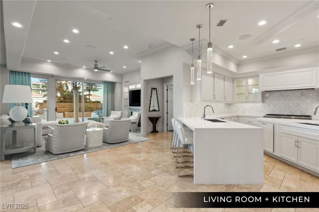 Fully remodeled 3,900 sq ft, 3 bedroom, 4 bathroom Garden Level unit with a private 4,000+ sq ft patio/garden area including an outdoor Viking grill + 1,000 sq ft detached casita. This is 1 of 10 Garden Level units in the building + only 1 of 5 with a detached casita. This contemporary unit includes new everything from lighting to bathrooms + a kitchen with top-of-the-line Wolf/Subzero appliances. Enjoy direct access from valet to a one-of-a kind property perfect for those with pets. Located in One Queensridge Place, the most highly amenitized building in Las Vegas, the building has a barista on staff to make your morning coffee, afternoon tea, or anytime protein shake. Additional amenities include an indoor lap pool, 13,000+ sq ft spa/gym, 25 seat theater, poker room, outdoor pool, 50 bottle wine locker + more. If you want to live in a high-rise, but feel like you're living in a single-family home, this is your opportunity
